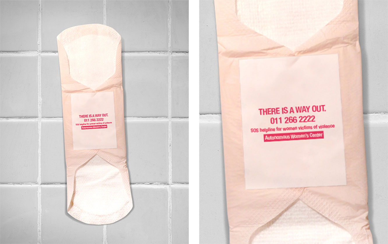 We found a solution in the one thing most women have in common: their menstrual cycle. The helpline number was printed on a small paper that holds the sanitary napkins’ wings together. The paper became the perfect medium: the first thing a woman sees when she opens a sanitary pad, yet completely invisible from the outside.